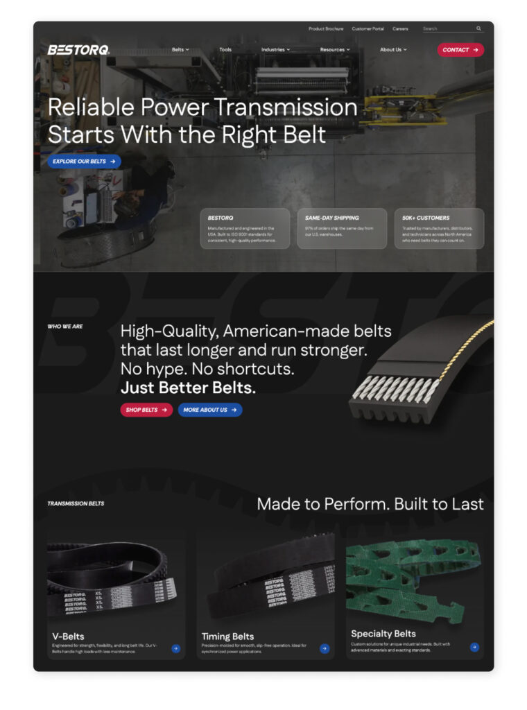 Bestorq is a U.S.-based manufacturer of high-quality power transmission belts used across a wide range of industrial applications. Over the past 18 years, the company has built a reputation for reliable products, strong distributor partnerships, and a commitment to service and support. With a robust customer portal and deep technical expertise, Bestorq continues to expand its reach, especially among larger OEM customers who expect digital sophistication and a responsive user experience.